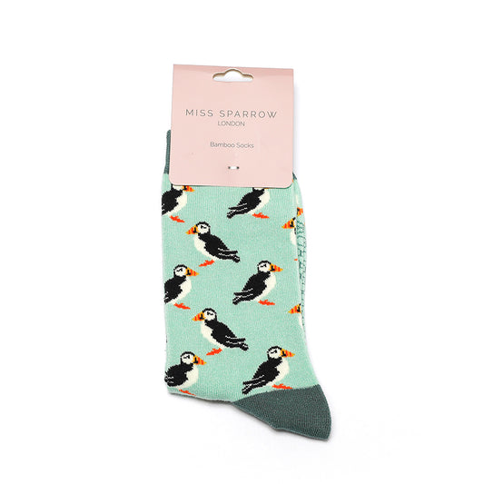 Miss Sparrow Fluffy Puffins Mauve Socks