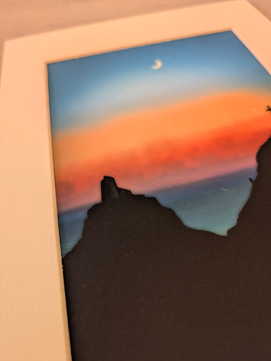 All of my prints are hand printed to order in house on high quality A4 230gsm Matte Archival quality paper, and then mounted with care in an off-white creamy mount. This is complete with a sturdy card backing, so this can be a stand alone piece or alternatively formatted for framing. The mounted print comes sealed in a cellophane bag for protection.
