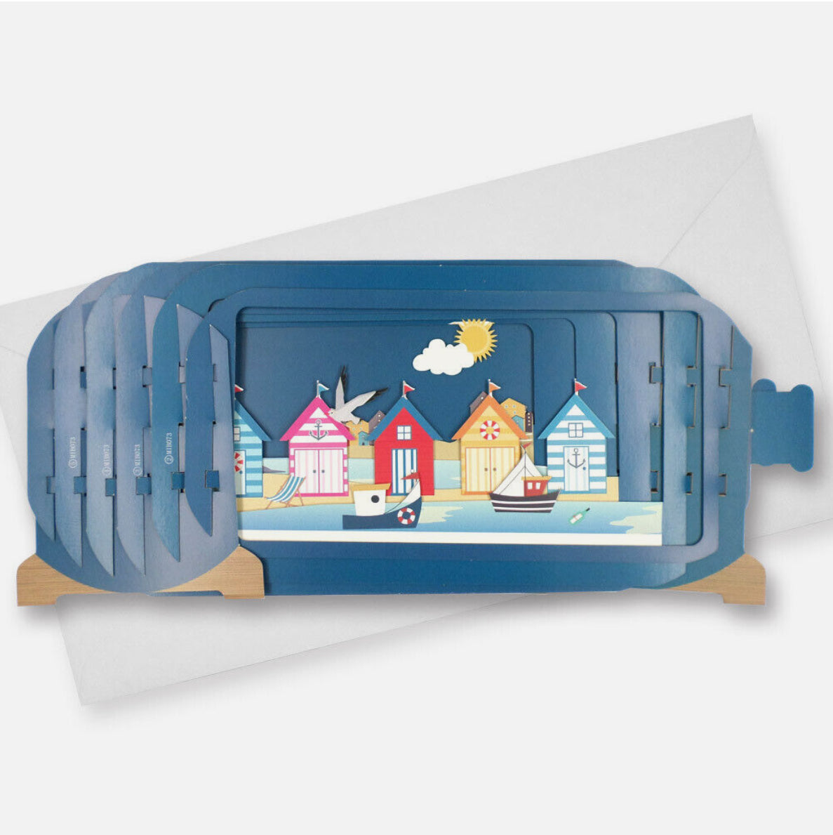 Alljoy Design Beach Huts Message In A Bottle Card