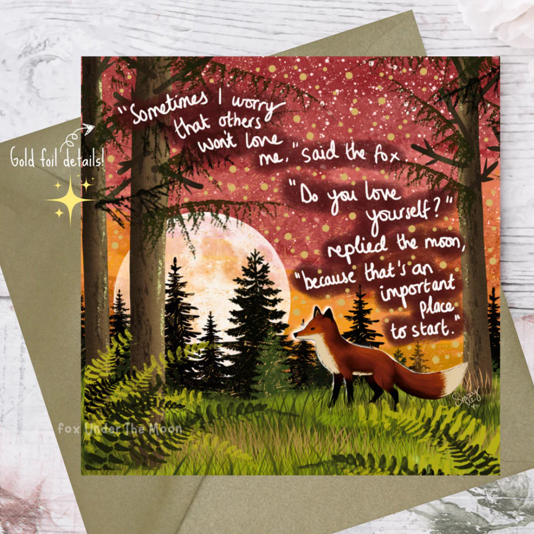 Imagined and created with love on Anglesey in North Wales, ‘Fox Under the Moon’ is the work of Stacey McNiell, and artist and author spreading messages of self-love and encouraging positive mental health through their words and pictures.